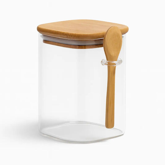 Aurora – Pote de Vidro com Tampa de Madeira Minimalista