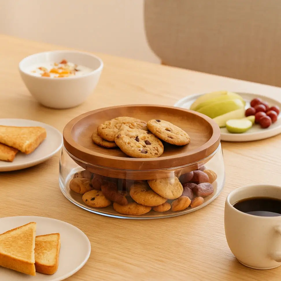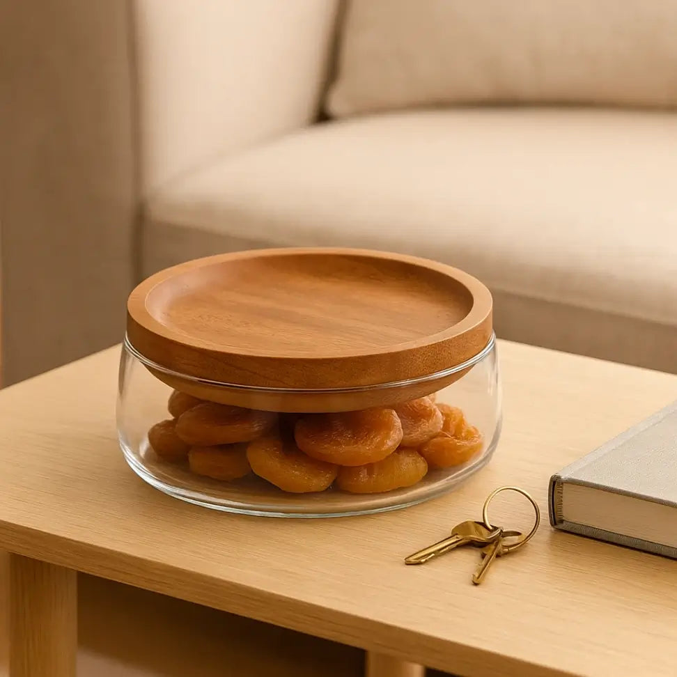 Aurora – Pote de Vidro com Tampa de Madeira Minimalista