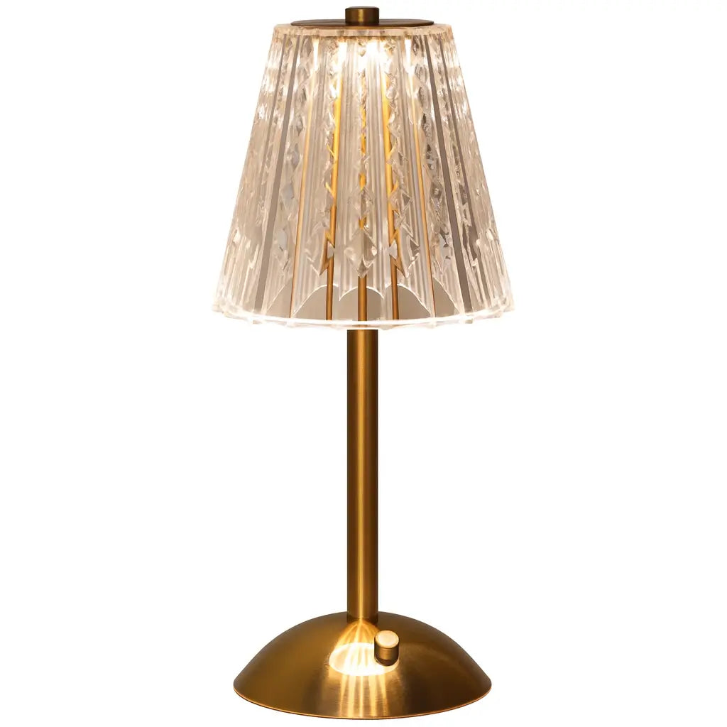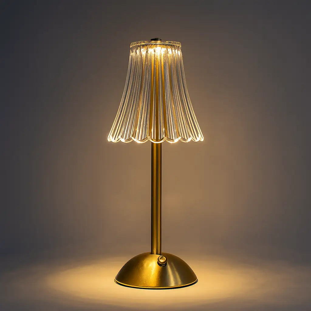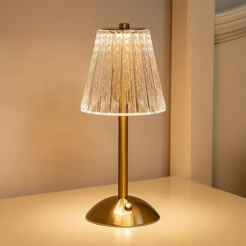 Com sua base dourada elegante e cúpula lapidada translúcida, ela espalha uma luz quente e envolvente, criando instantaneamente um clima de aconchego com sofisticação.