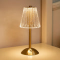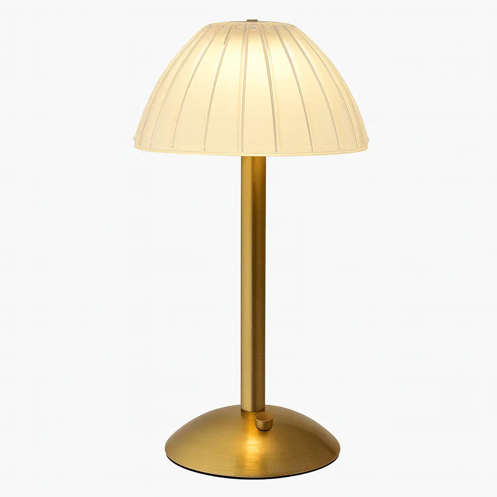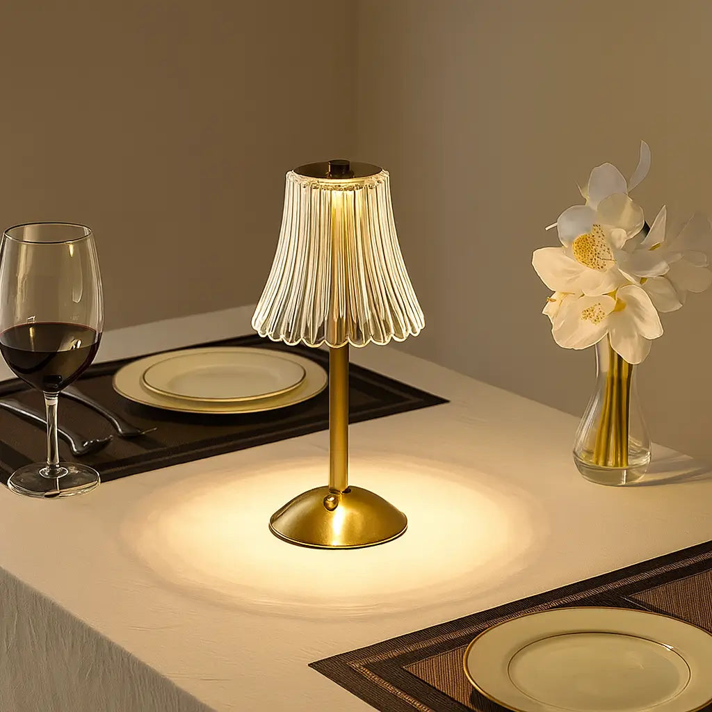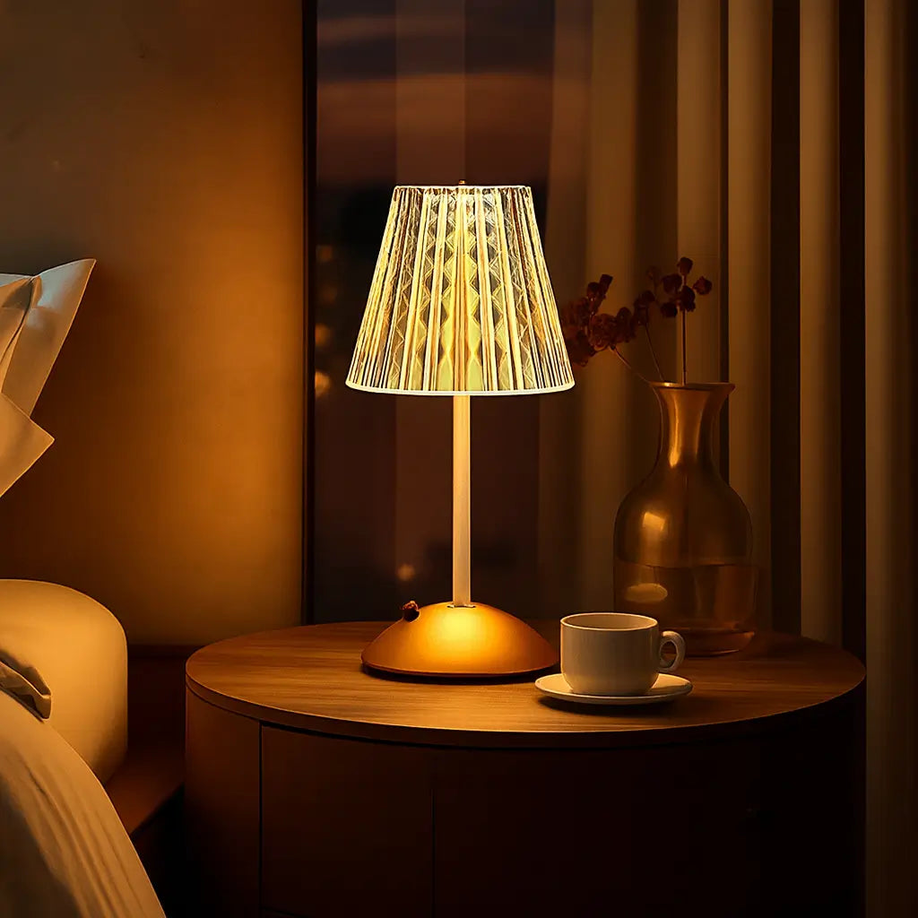 Com sua base dourada elegante e cúpula lapidada translúcida, ela espalha uma luz quente e envolvente, criando instantaneamente um clima de aconchego com sofisticação.
