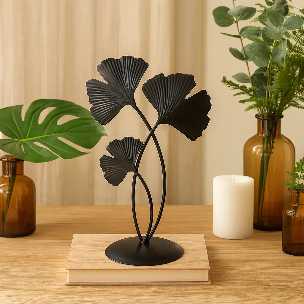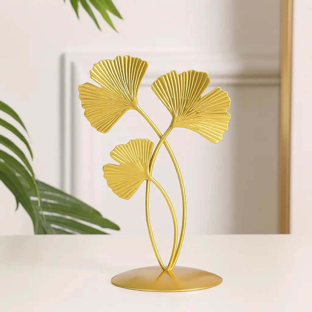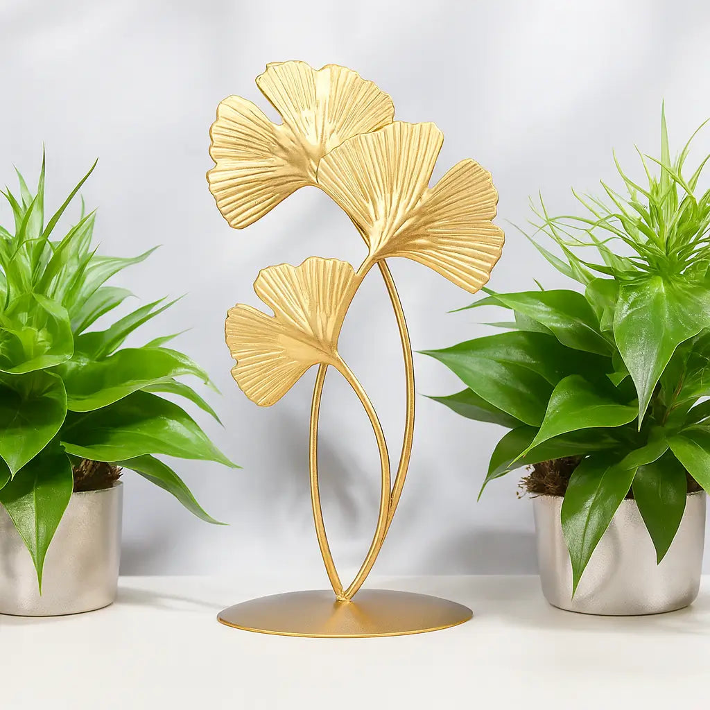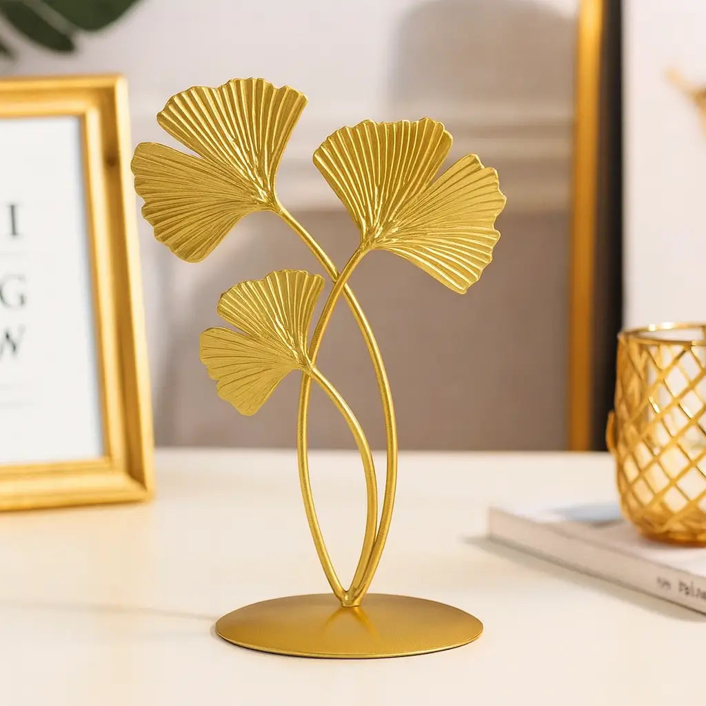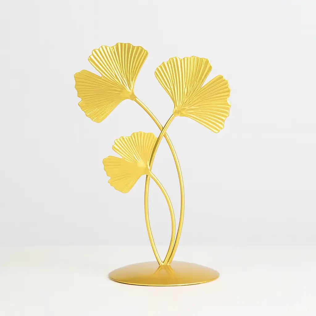 Inspirada nas folhas em leque do ginkgo, sua estrutura dourada se desdobra com fluidez e leveza — como se dançasse ao vento.