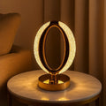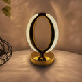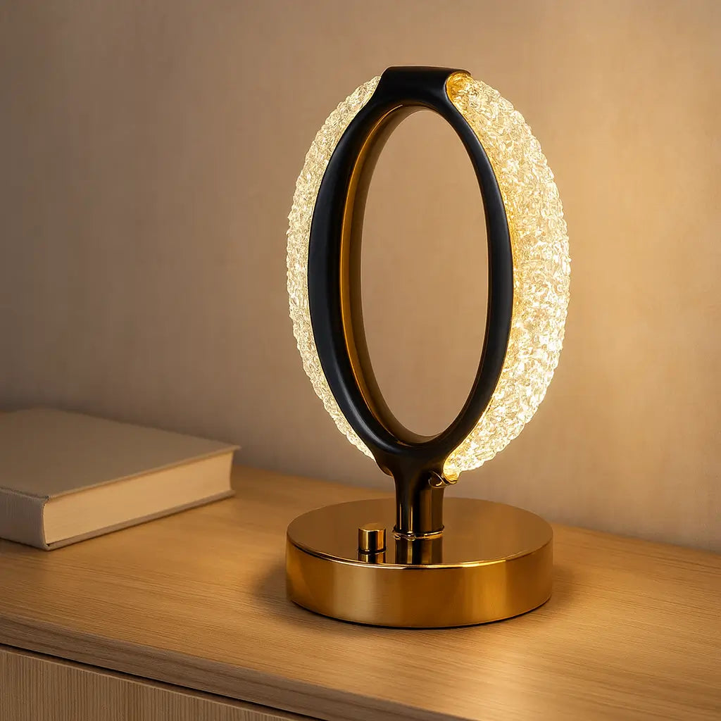 Seu corpo oval esculpido e textura lapidada revelam um brilho contínuo, elegante e suave — como se a luz fluísse em silêncio ao redor da peça.
