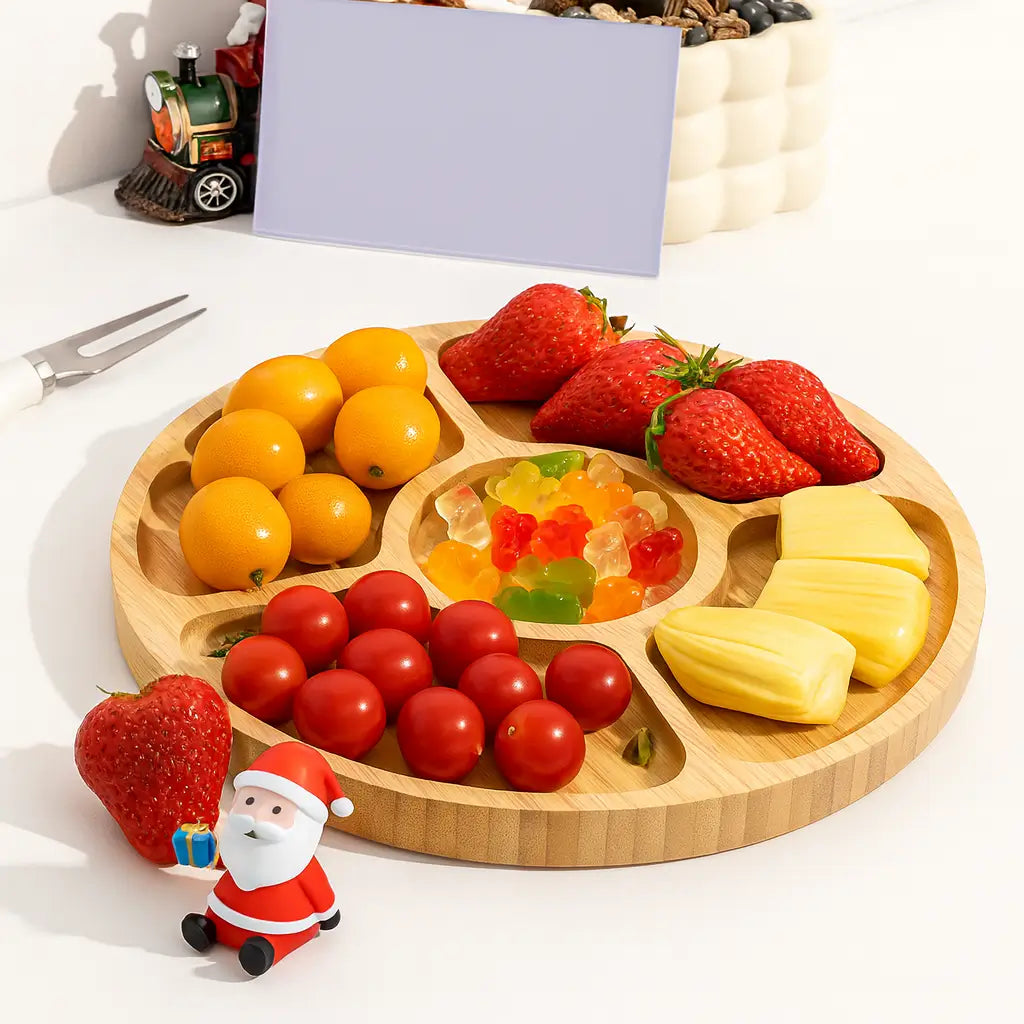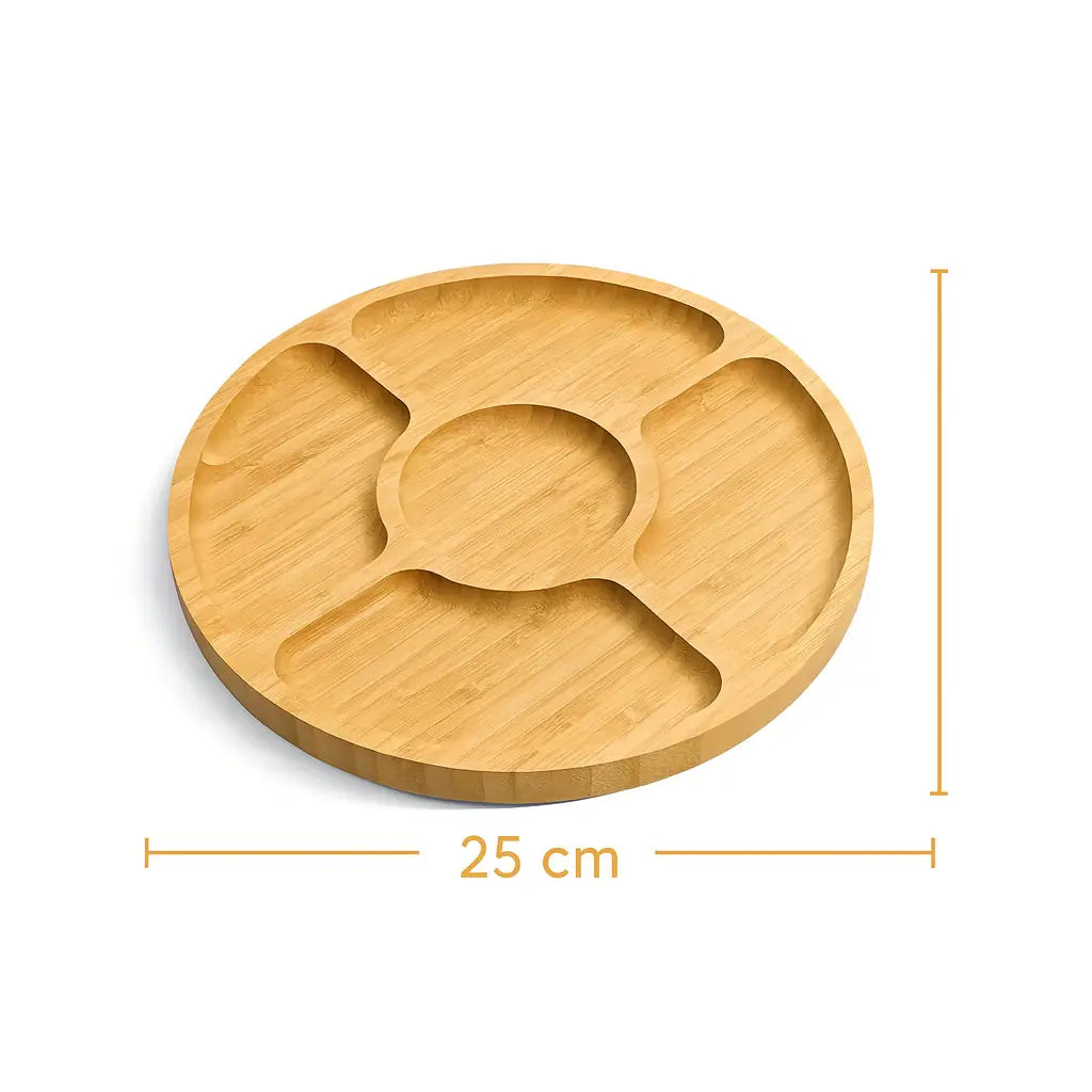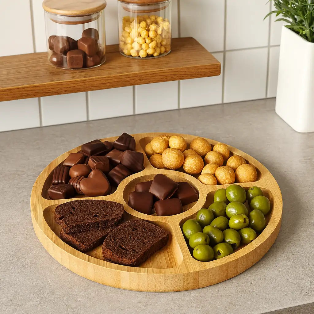 Com seções bem distribuídas, acomoda petiscos, queijos, frutas ou molhos com elegância e equilíbrio.