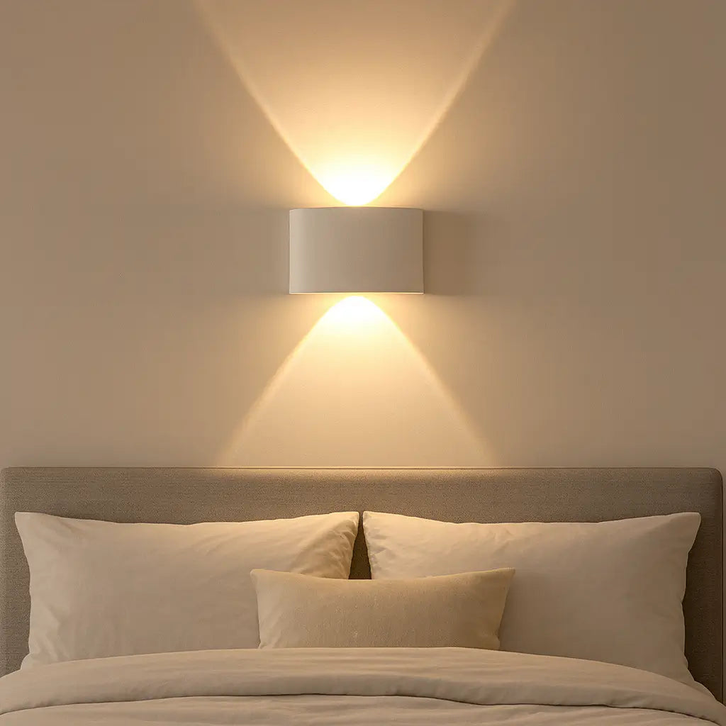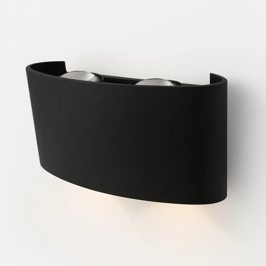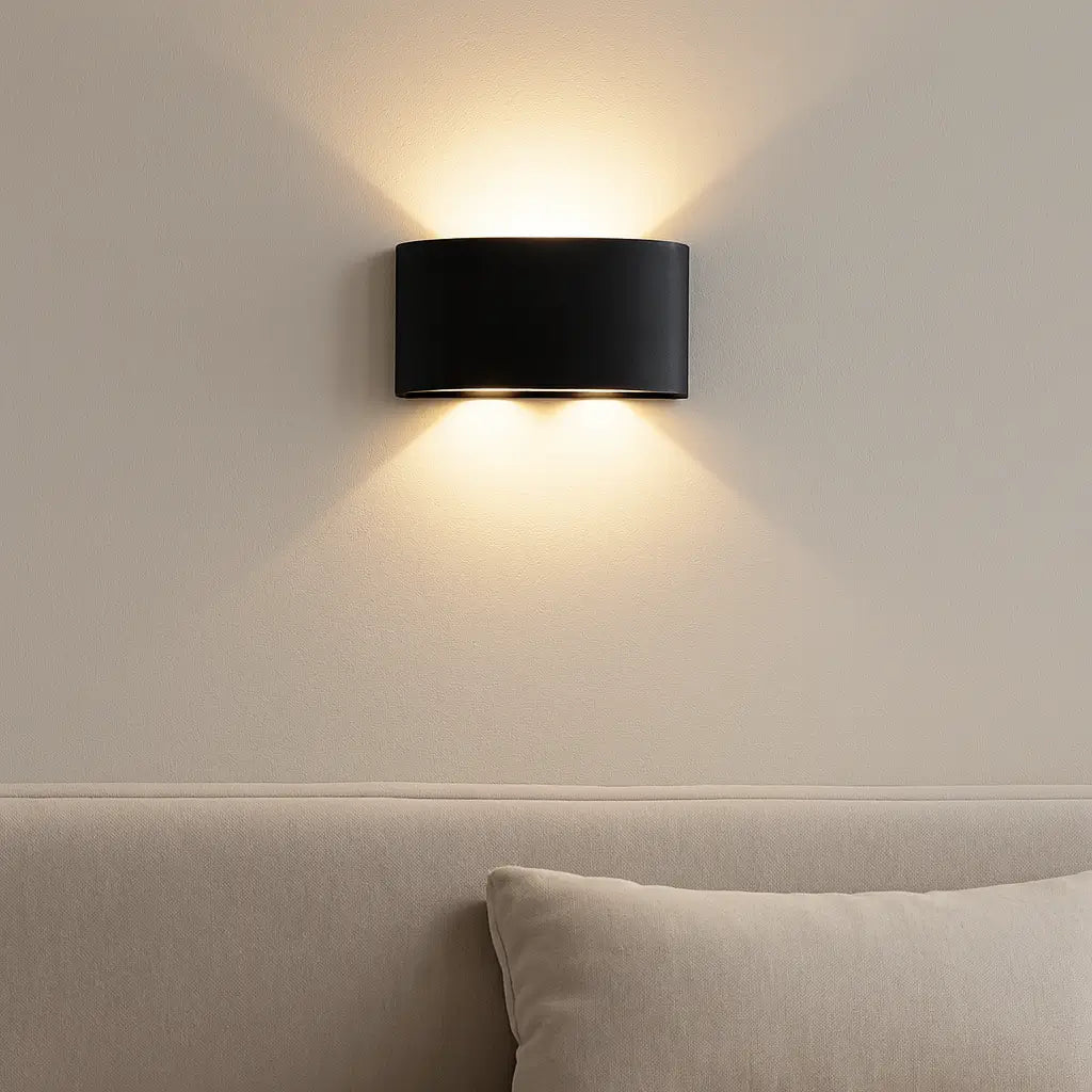 Com acabamento preto fosco e feixes de luz projetados para cima e para baixo em um traço limpo e simétrico, ela transforma qualquer parede em uma composição visual marcante.