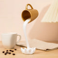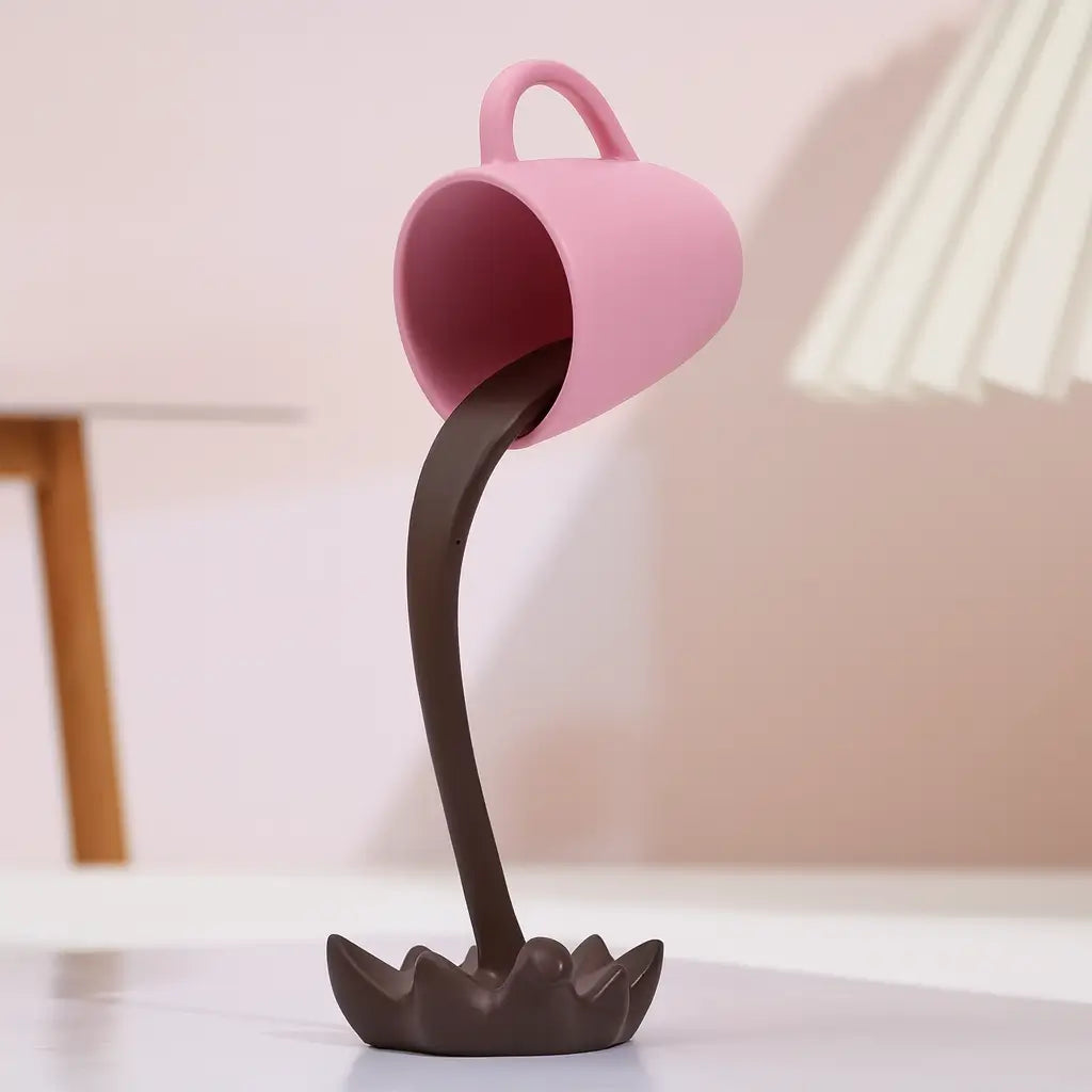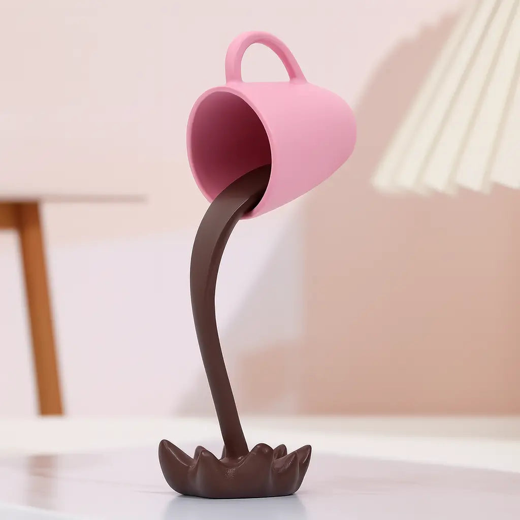 Seu design simula o movimento fluido de uma bebida derramando, como se o tempo tivesse sido pausado para eternizar um momento simples — e ao mesmo tempo mágico.