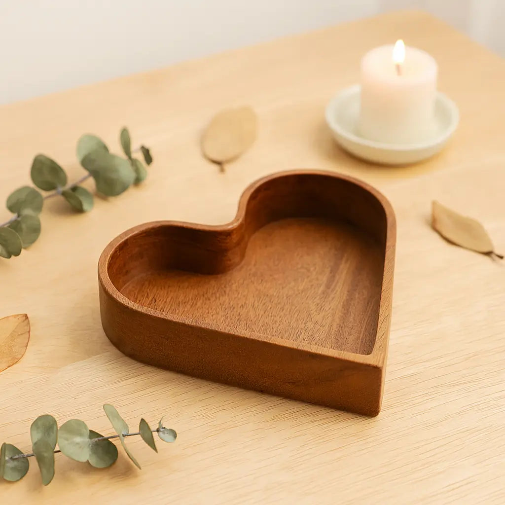 Esculpida em madeira natural e desenhada no formato universal do amor, ela une rusticidade e delicadeza de forma única.